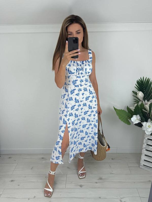 Арт 517 Тканина штапель Цвет черный, белый, малиновый, голубой, мокко Размер 42-44,46-48,50-52 Цена 570 грн Платье миди, рукав на резинке, на груди сборка и резинка, сзади потайная молния, на юбке сбоку разрез