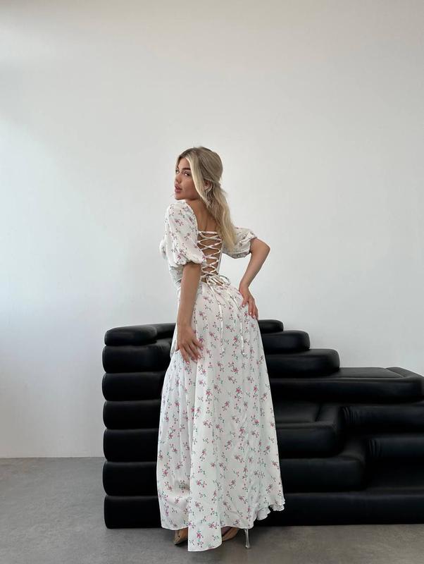 🌈3! шикарное платье длинное в цветы на завязках белое белое женское женское платье длинно...