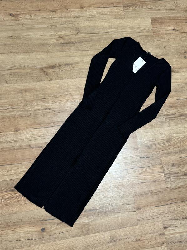 Черное платье Zara Стан: нова Размер: М Длина: 122 см Длина реза:38 см Длина рукава от плеча: 62 см Ширина плечей: 36 см Обхват груди: 33 см Обхват талии: 32 см Обхват у бедрах: 39 см Тканина тягнеться