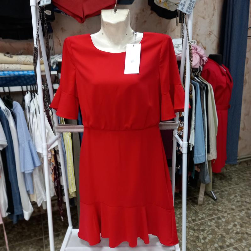 Очень красивое чевонное платье.Подойдет как на праздник иак и на каждый день.Знизу и на рукавах волан, ззала на молнии.На талии слегка присборенный верх платья.Сукня на подкладе.Замеры: об.гр.48см., об.талии37см. длина 95см.