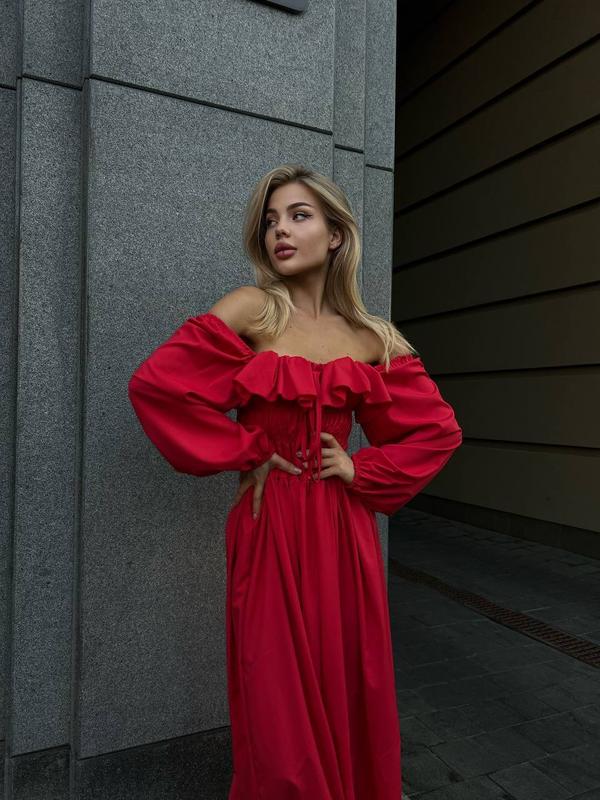 Сукня Тканина: софт Цвета: фрез, красный, масло, черный Размеры: 42-44, 46-48 Невероятное красивое удлиненное платье на все события жизни❣️ Легкая приятная ткань, добавляет комфорта в жаркие дни (не светится). Йде як на фото. В груди на резинке, от талии идет свободное. Высокое качество🔝
