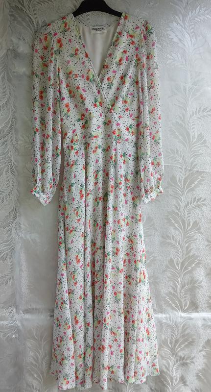 Платье в цветы с длинными рукавами.p.XS.S.плечи32.грудь 40.талия 36.с боку длинная застежка.по бокам карманы. рукав 61. длина 141.