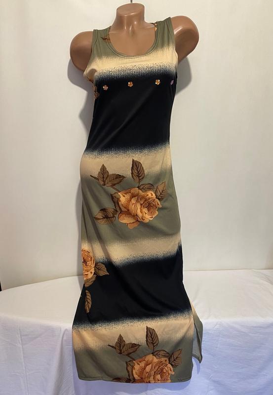 Летнее длинное платье поливискоза, по бокам внизу разрезы ЗАМЕРЫ : Чтобы точно определить, подойдет ли вам вещь, сравните с замерами своей одежды наподобие . Замеры даны в спокойном состоянии и умеренно растянутом Ширина (по груди) - 44-50см Ширина (по талии ) - 44-47см Ширина (по бедрам) - 49-51см Длина - 124см