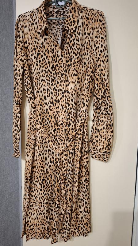 Платье Леопардовый цвет 100% вискоза Фирма lefties Длинный рукав Под пояс Размер XL