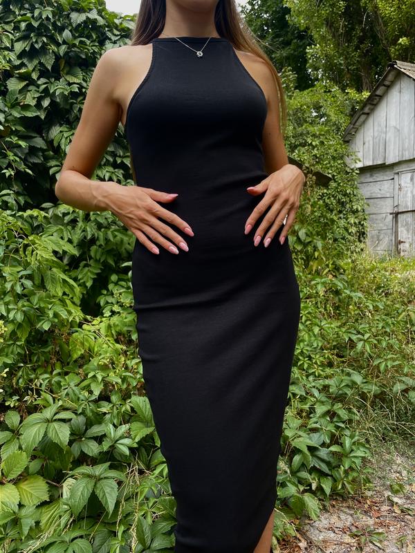 Чорна сукня міді. Тканина у рубчик. Легко підрізати або зробити розріз на ніжку. Підходить для спеки, або помірної погоди. Гарно виглядає під жакет. Колір - чорний, тканина не просвічує