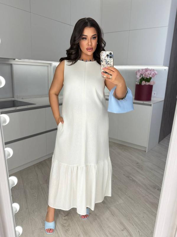 Женское платье длинное летнее льняное платье в пол макси батал белая черная 995