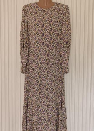 Платье 👗длинное в нежно цветочный принт. Рукав длинный с широким манжетом, слегка расширенное к низу. Размер 8 Состав 100% вискоза.