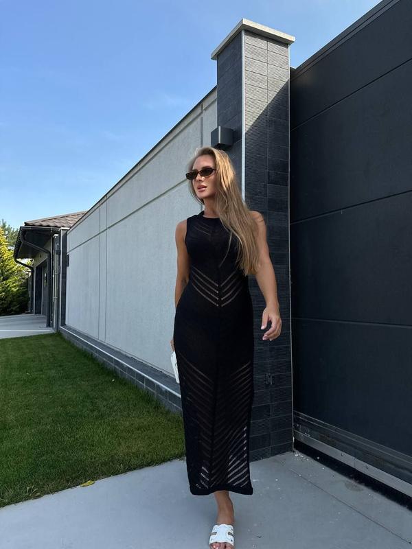 Трендовое длинное полупрозрачное платье макси в вязаном стиле туречечника