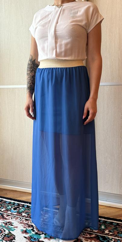 Легкое летнее сарафановое платье без дефектов. Длина 142см. Ширина по плечам 50см. Ширина груди 44см. Ширина талии 28см(талия на резинке что очень удобно). Ширина бедра 57см. Ширина низу 70см.
