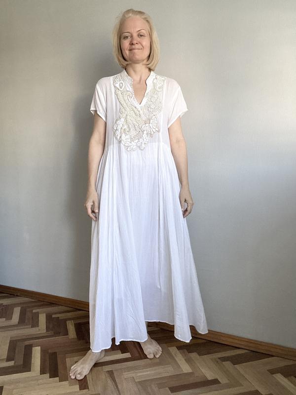 Неймовірно вишукана сукня класу люкс! З ніжного шовковистого батіста Ручна вишивка Підійде на будь яку фігуру за рахунок вільного крою Дуже ефектно буде і на пляж і до ресторану Мої параметри 166/90/75/100см Дуже багатий вибір цікавих речей! З великих замовлень роблю дуже добрі знижки :) При покупці у моєму магазині товару від 200 грн у подарунок будь який товар вартість якого до 100грн!