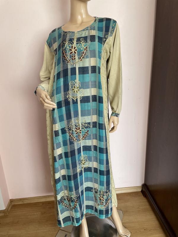 Приемное платье с машинной вышивкой. Без подкладки.до низа расширено. Замеры в груди 50см в талии 51 см в бедрах 70см длина 134см рукав 56см по окружности руки 25см в плечах 44см 13:8:24