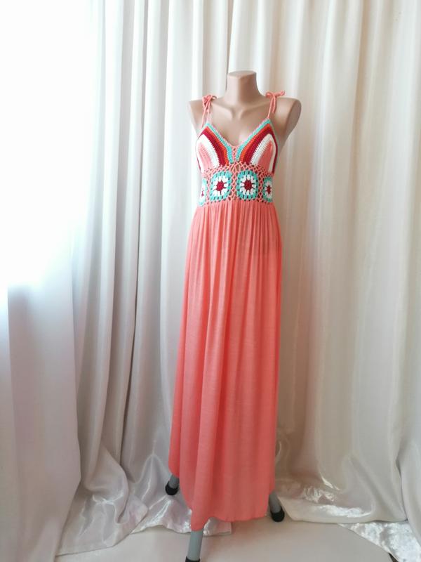 Красива напівпрозора сукня сарафан підлога бюст вишивка макраме плетінка на довгих бретеля...