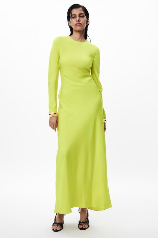 Оригінал з оф сайту В наявності S Ціна по бірці 89€ 98% віскоза 2% еластан Колір : lemon Пог 45 Талія 38 в натягнутому Бедра 50 тягнеться до 60 так як теанина спадаюча Довжина 150 Рукав 66