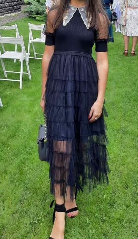 платье черное с воротником размер указан...низ -сетка, очень легкое одетое 1 раз цена 600 купленное значительно дороже