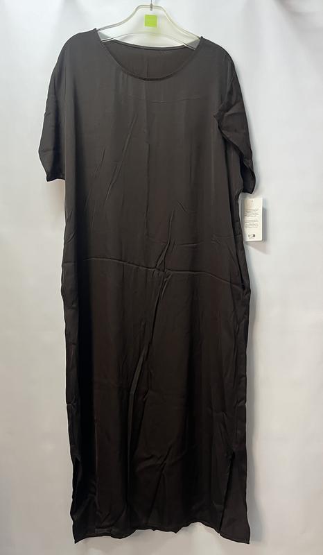 Платье из плотного атласа (100% вискоза) клинь - темный шоколад. По бокам карманы. Длина 124 см Полуобхват груди 56 см Полу обхват бедер 58 см