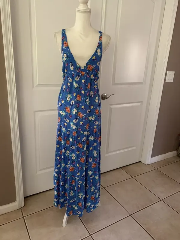Синяя летняя птица от stradivarius в размере S. Имеет дефект: место куда вставляется бретелька немного разорванное (7 фото) когда отрывали бертку