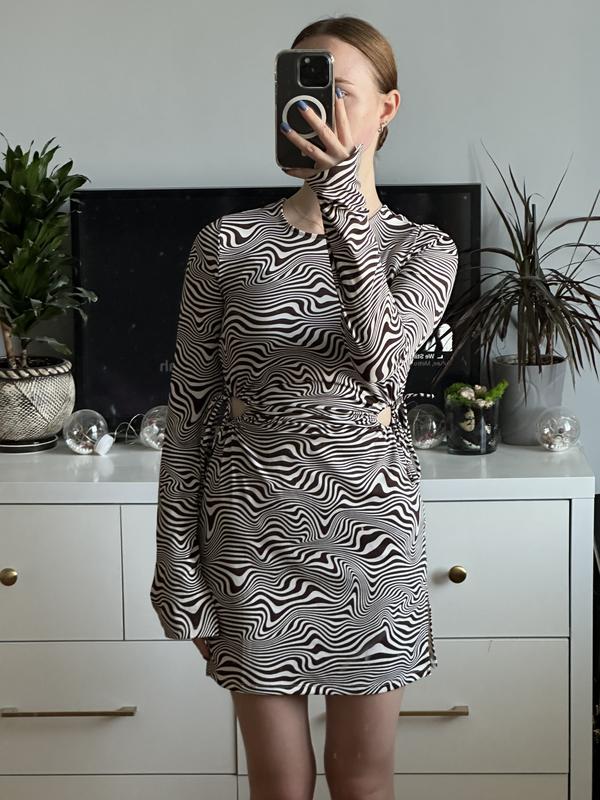 Платье с разрезами на талии, которые стягиваются шнурочками на рукавах и внизу есть небольшие разрезы подойдет на размер xs-s идеальное состояние