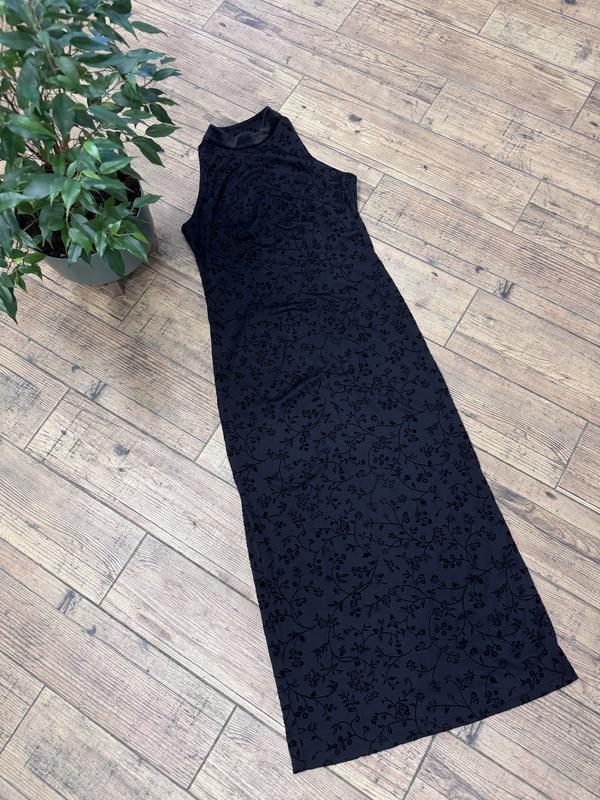 Черное платье макси в пол с вырезом сзади