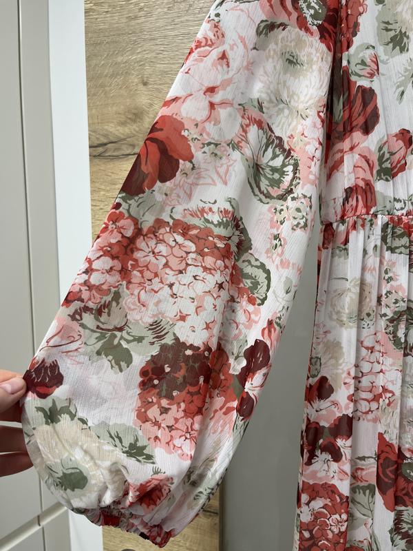 Невероятно нежное, легкое, яркое платье из шифона. Пышный рукав с резинкой на запястье. Талия также на резинке. Есть пояс отдельно. Юбка широкая, с двумя ярусами. Длинная, на рост 165 - по щиколотку. Платье-подклад из коттона. Размер -38й европейский. Сукня 🔥
