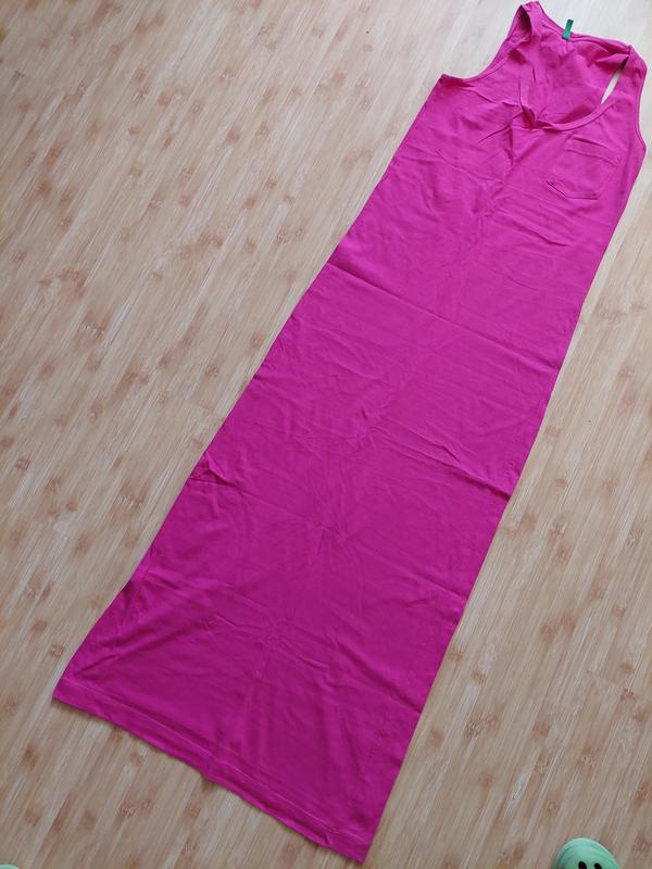 длинная в пол платье, с накладным карманом на груди.