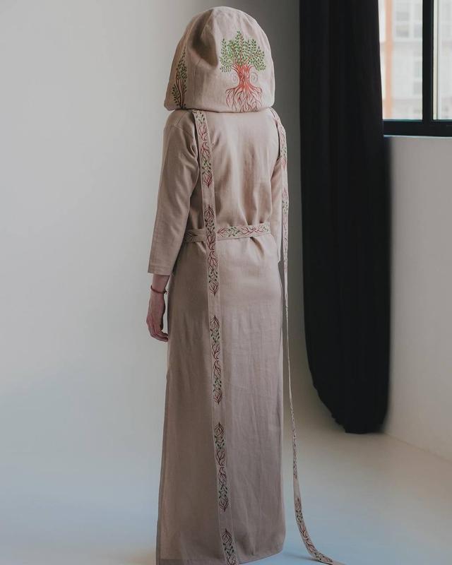 Длинное вышитое платье с капюшоном