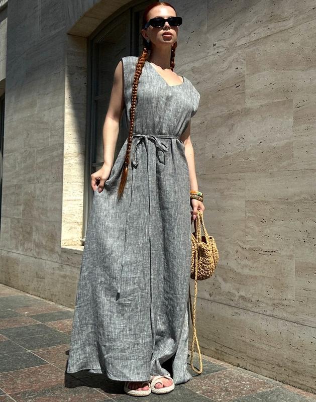 ⚡️Платье "Noir" свободного кроя с поясом⚡️ Красивое платье свободного кроя, А-образного силуэта. Модель без рукавов, имеет V-образный вырез, внутренние боковые карманы, декоративный пояс и простой фасон, не ограничивающий движений! 🍓 ▪️Материал: сертифицированный 100% лен премиум качества европейского производства ▪️Длина: платье - 130 см ▪️Цвет: серый ▪️Размер: Oversize По желанию возможен отшив в другом цвете, любом размере и длине! ☝Отправка Новой почтой по предоплате: 250 грн+накладная✈️ ☝БЕСПЛАТНАЯ ДОСТАВКА по полной предоплате: ждать отправку 2-5 рабочих дней✈️ ☝Есть обмен/возврат в течение 1 дня с момента получения посылки! ☝Способ оплаты: На банковскую карту (включая комиссию) Реквизиты отправляем в чат!