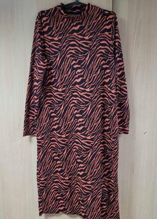 Длинное платье прямого силуэты, слегка пристально, сбоку один разрез, цвета чёрный, оранжевый. Новое, без бумажной этикетки. Ог 106+, Об 112+, рукав 62, длина 116,