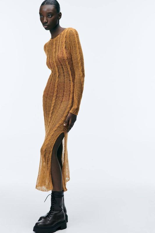 Полупрозрачная вязаная #платье Zara, 10% шерсть ✅S-M, Длж 140, плечи 40, ПОГ 40-50, рукав 60 ✅L-XL, Длж 140, плечи 42, ПОГ 45-55, рукав 62 (3) Цена 820 грн, новая