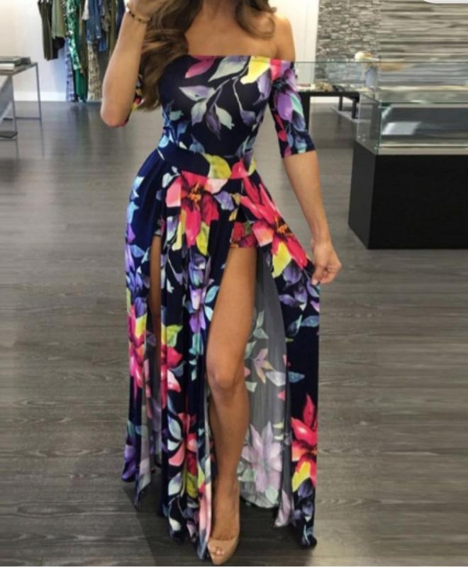 платье макси с большими разрезами спереди и подкладом с шортами,на размер С-М, замеры ог 48-59,от 38-49,бедра (замеры бедра в шортах) 49-59см, длина 135см