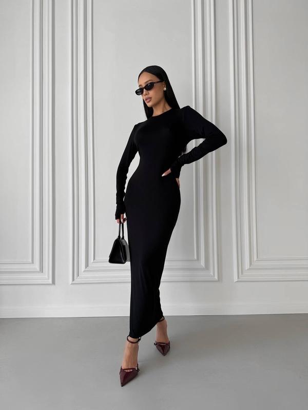 Длинное платье из вискозы с вырезом для пальчика три цвета