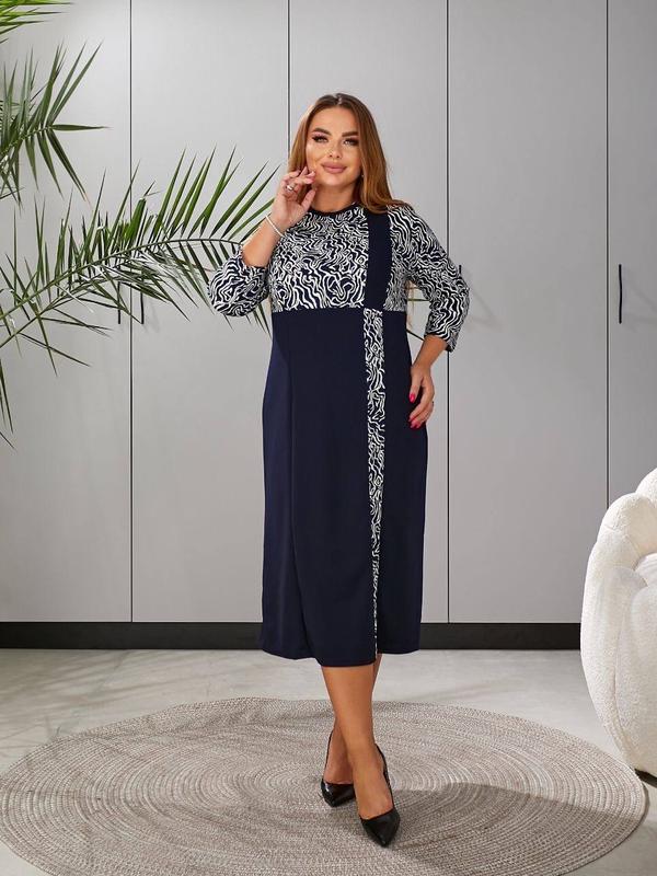 🍁Платье «Шарм»🍁ДО ОГ 134/ ОБ 144 🍂Акционная Цена: 1190грн🍂 ✅Большие размеры в наличии✅ Размеры: 52-54; 56-58; 60-62; 64-66 Маркировка: 2хl; 3хl; 4xl; 5хl Ткань: креп дайвинг Цвет: темно-синий с принтом как на фото Платье женское комбинированное в больших размерах. Силуэт - прямой, рукав-тачной 3/4, вырез горловины круглый. Идеально подойдет, как для праздничного мероприятия, так и для повседневного образа. 👉👉👉👉Хотите оформить для себя модельку? Пишите нам в сообщение