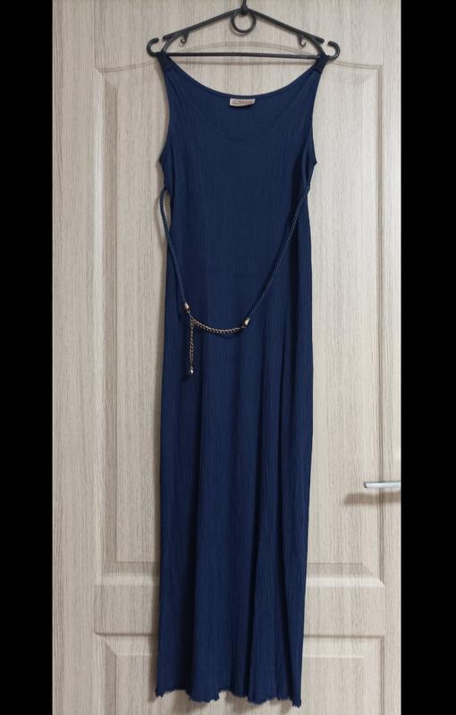 Продам облегающую летнюю универсальную длинную платье жатку синего цвета, от украинского бренда "Ninety nine". Бретели-резинка, под грудью дополняя шнурок - без него тоже красиво лежит по фигуре. Ткань красиво тянется. Платье подходит, как для вечеринки, так для повседневной носки. Состав: 76 - вискоза, 24% - полиэстер. Длина - 125 см.