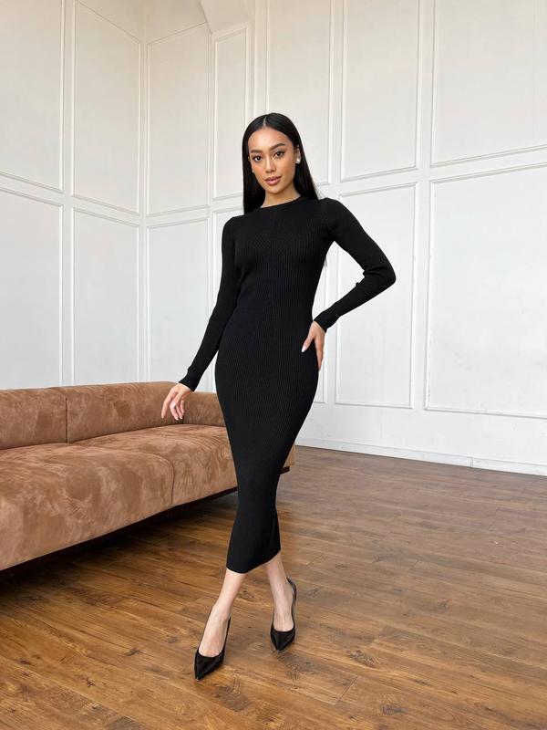 Облегающее длинное платье мелкой вязки с оригинальным узором