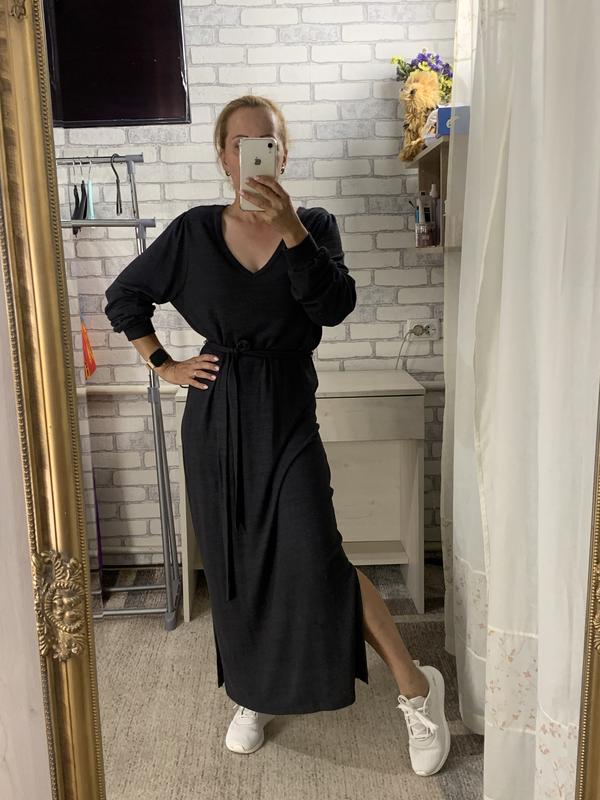 Платье в прекрасном состоянии, мягкое и эластичное, очень хорошо тянется! Есть клипса от бирки, возможно платье новое! 53% вискозы, 44% полиэстера и 3% эластана Размер указанный XL Плечи 39, по груди 53, бедра 53, рукав 66, длина 137 см Измерены в спокойном состоянии ткани!