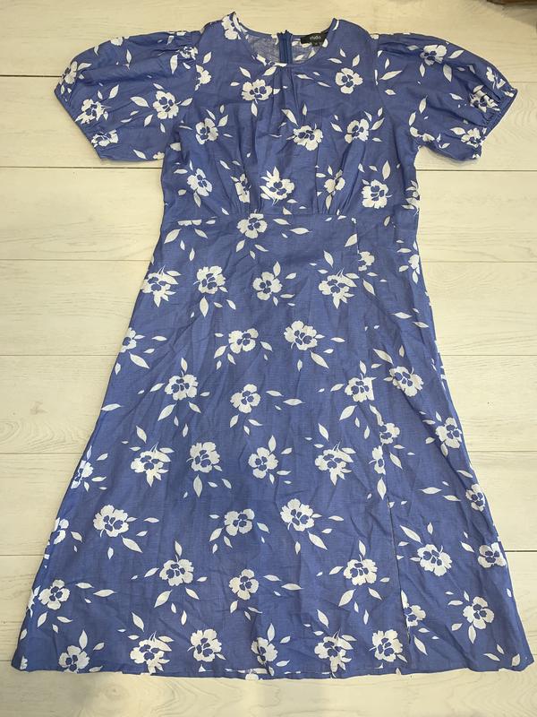 Длинное платье платье в цветочный принт с разрезом на ноге льняное studio 14 m-l