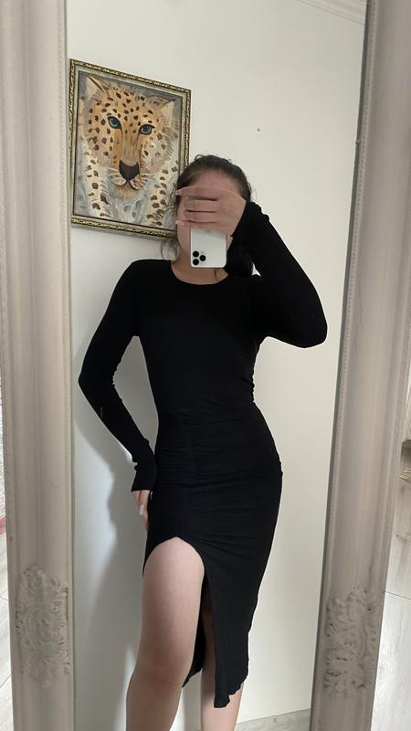 Платье длинное приятное к телу Длина рукава от плеча 60см Длина от горла 107см Длина от талии 79см Длина разреза 43см