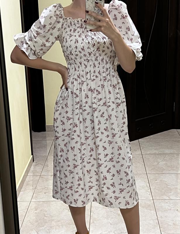Манжетные рукава и верх-жатка, длина ниже колена, есть карманы. Размер S-M, ткань хорошо тянется.