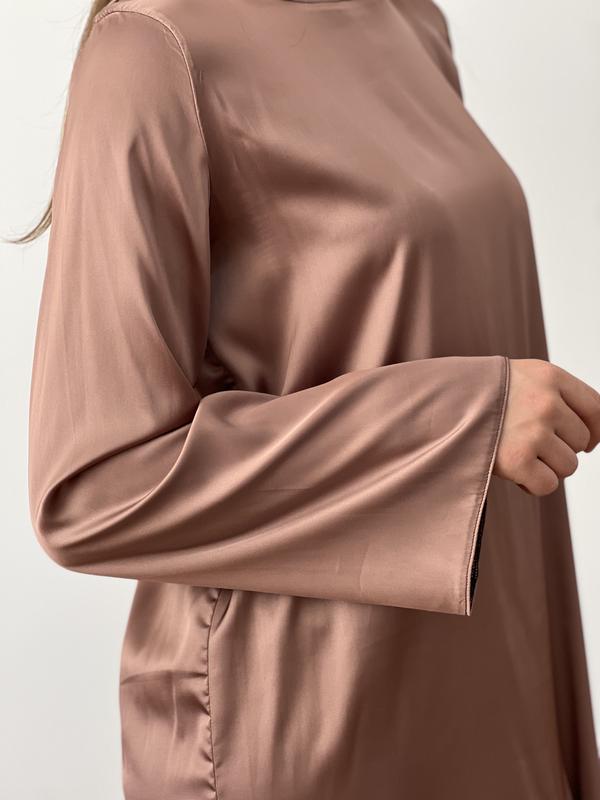 платье трапеция с хорошеньким рукавом шоколадный цвет. тканина атлас. (не светится) підійде xs. s. m. длина 92