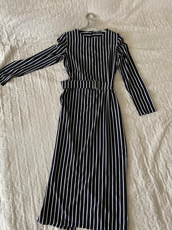 Сукня,в ідеальному стані,одягнена лише один раз ,виглядає дуже вишукано,взаді на замочку і має не великий розріз,в комплекті має поясок.Розмір S-M