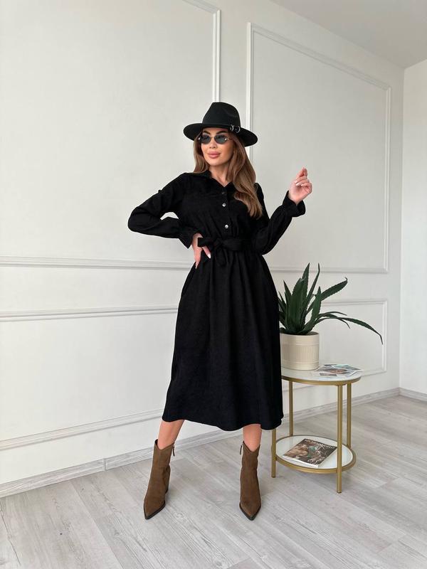 Сукня міді Мод 106 ☝️Модель на функціональних кнопках, з поясом та кишенями, англійський комір. ▫️Розміри:42-44,46-48,50-52 ▫️Тканина-вельвет на х|б основі