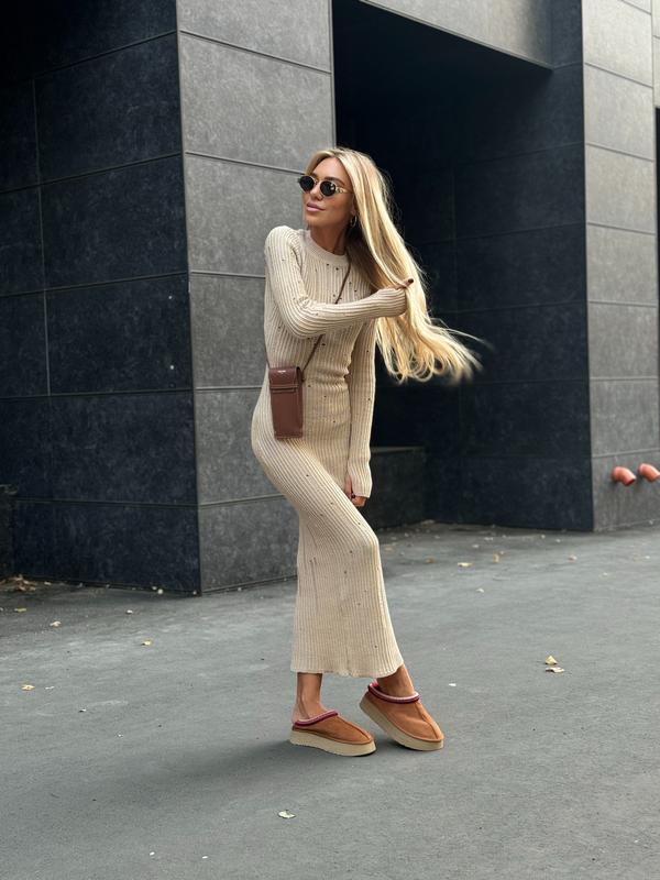 Знижка‼️🆘 бежева осіння сукня тепла трикотаж вʼязана довга 🔝