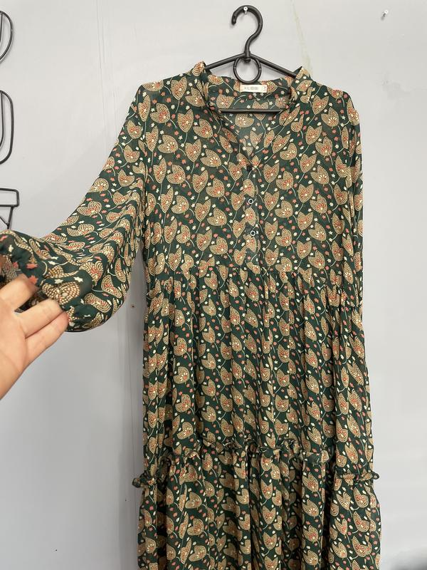 Платье шифоновое длинное Замеры: - плечи 42 см - грудь 50 см -длина перед 111 см зад 137 см - рукав 58 см