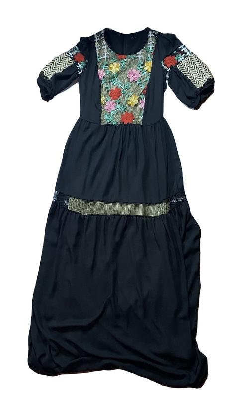 Черное длинное платье с вышивкой