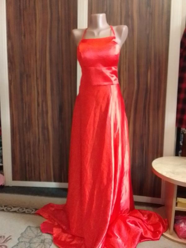с длинным шлейфом.для фотосессии. красный атлас.лиф с чашечками.размер 38-40.субка с карманами.с подкладкой