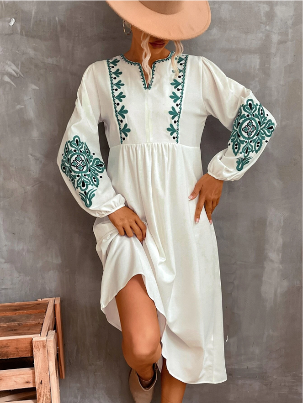 Жіноча, ніжна та стильна сукня вишиванка. Не просвічується. Нова. Розмір М/Л. цікавий орнамент спереду та на рукавах. Рукавчики тримають обємну форму Заміри: Довжина 118 см Талія 33 см пів обхват на резинці тягнеться максимум до 40 см Пів обхват Груди 48/50 см Пів обхват Бедра вільно