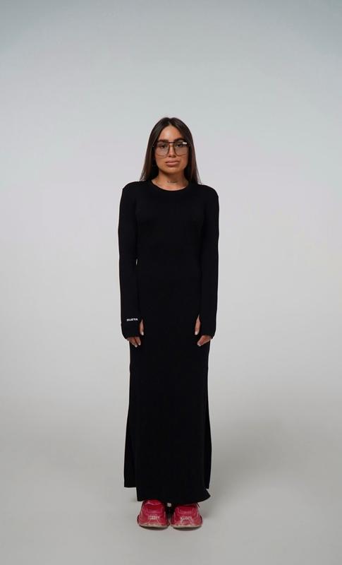 НОВА😍 платье черное с разрезами по бокам onesize вискоза на рукавах разрезы для пальцев