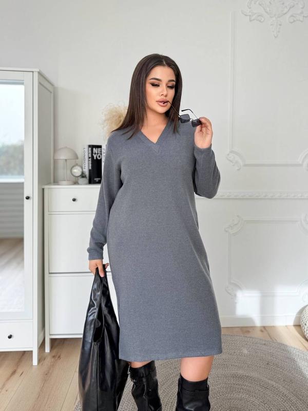Платье арт. ha. 2188 Ткань: ангора вязкая (плотная) Цвет: черный, графит, мокко, розовый Размер: 48-50, 52-54, 56-58 Платье свободного кроя с длинным рукавом и V-вырезом. Снизу по бокам разрезы. 💰Цена : 870 грн