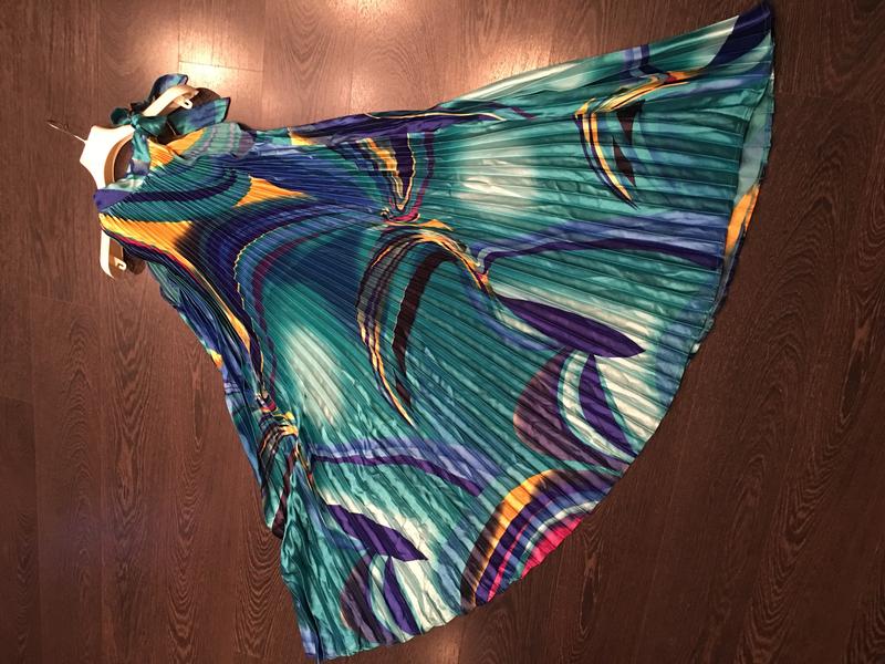 Сарафан плиссе из шелка! Очень красивый и яркий! Одевается через голову и завязывается на плечи бантиком! Фасон колокольчиком длиной ниже колен! Очень красиво под шпильку! Легкое и разлетающееся! Спрашивайте!