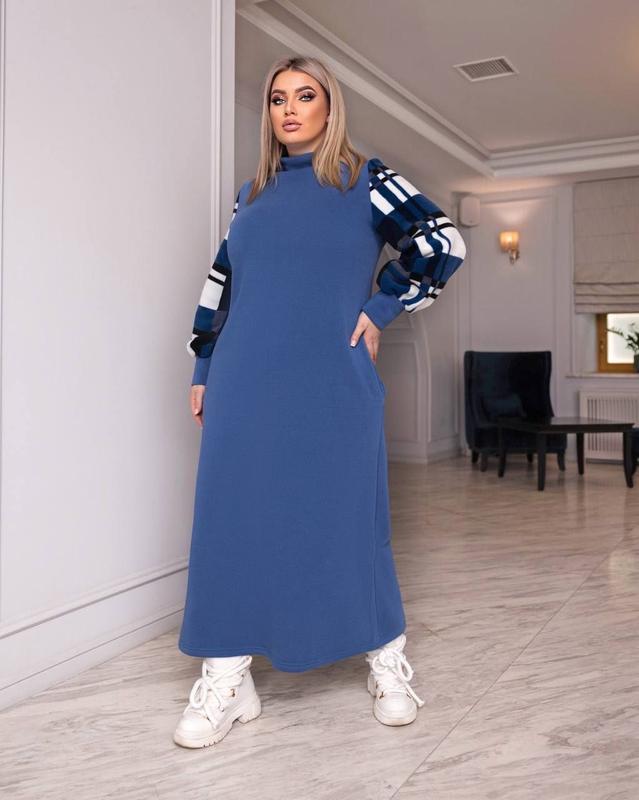 ⬆️Невероятное, комфортное шикарное платье Сукня мод 1532❤️119 Тканина- тринитка і рукав кашемир. Супер качество! Цвет - черный, хаки, электрик, фрез, джинс. Платье с карманами, свободного кроя,на рукавах дизайн клетки может изменяться. Наслаждайтесь комфортом и теплом благодаря теплой ткани. Почувствуйте непревзойденное удобство на весь день! 50-52 - ог-104, обт- 102, оби бы-116, длина рукава- 65, длина платья-132. 54-56 ог-112, вот-110, обб- 124,длина рукава- 67, длина платья-134 см 58-60- ог-122, вот -120,, об-136, длина рукава- 67, длина платья-137. 62-64 - ог -132,, вот- 128, обб-144, длина рукава- 68, длина платья-137 см.