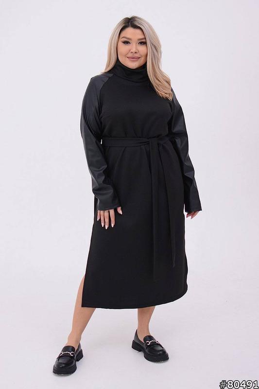 Элегантное платье с кожаными рукавами 🖤🖤🖤 платье длинное платье батал с поясом